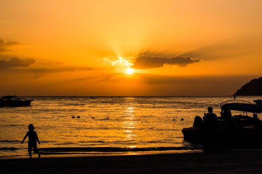 We stayed right at the Pantai Chenang beach. It was quite quiet and peaceful there during the day time as most people were exploring the island then, with only a few people swimming or sunbathing at the beach. But right before sunset, people started gathering at the beach as the sun sets on that side of the island, so you’ll get some beautiful views of the sun sinking into the sea. Even the Aiskrim (yes, that’s how it was spelled on his bike) man showed up by that time with a cooling box full of ice-cream, sorry aiskrim.. But after the sun had set, the main street was buzzling with people. Restaurants and bars were crowded and the music and entertainment shows started at the beach and didn’t really stop until 1 AM any of the nights we were there. So if you want some peace and quiet, maybe choose some resort or a hotel a bit further away. I didn’t mind the business. It’s part of the experience.